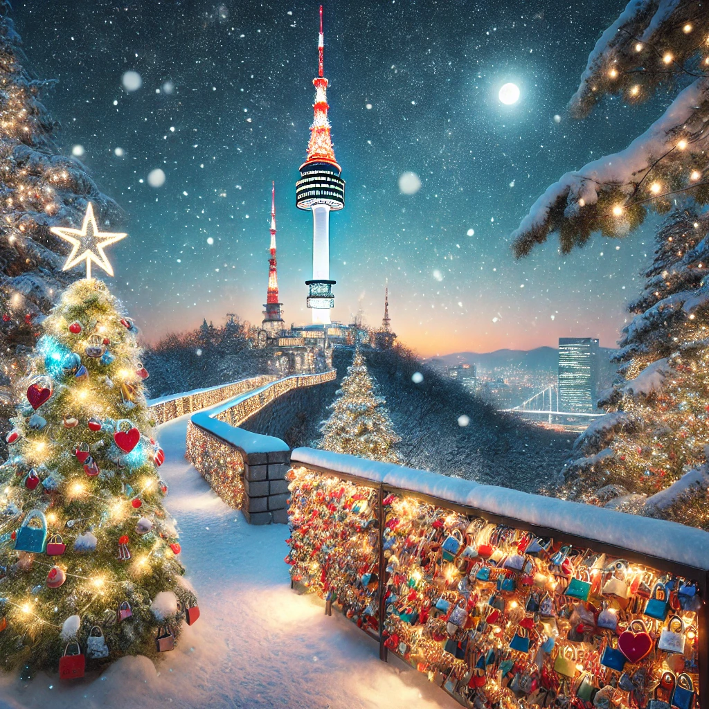 남산서울타워는 크리스마스에 더욱 황홀해지는 대표적인 데이트 장소입니다. 이곳은 축제 장식으로 꾸며져 있으며, 특별한 크리스마스 조명 디스플레이가 특징입니다. 전망대로 올라가면 도시의 크리스마스 불빛을 감상할 수 있는 숨막히는 360도 전망이 펼쳐집니다. 또한, 커플이 사랑의 자물쇠를 달 수 있는 유명한 '사랑의 자물쇠' 벽도 있어, 사랑의 영원함을 기원하는 의미로 많은 연인들이 찾는 장소입니다. 저녁 식사는 타워 꼭대기에 위치한 회전식 고급 레스토랑인 _n.GRILL_에서 낭만적인 분위기를 즐기거나, 전통 한식 레스토랑 _HanCook_에서 도시 전망을 감상하며 식사를 할 수 있습니다.